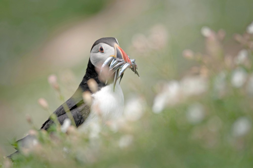 I immediately sensed a feeling of calm as I trekked up from the beach onto the grassland beyond. The fresh sea air, blue skies and barrenness of the land all added to its magical atmosphere. I was soon greeted by perhaps the islands most famous visitor – the Atlantic Puffin, as they fly in with their catch – a mouthful of sandeels to feed to their chicks. I was surprised at their placid behaviour as they waddled past my feet, en route to their nesting burrows.